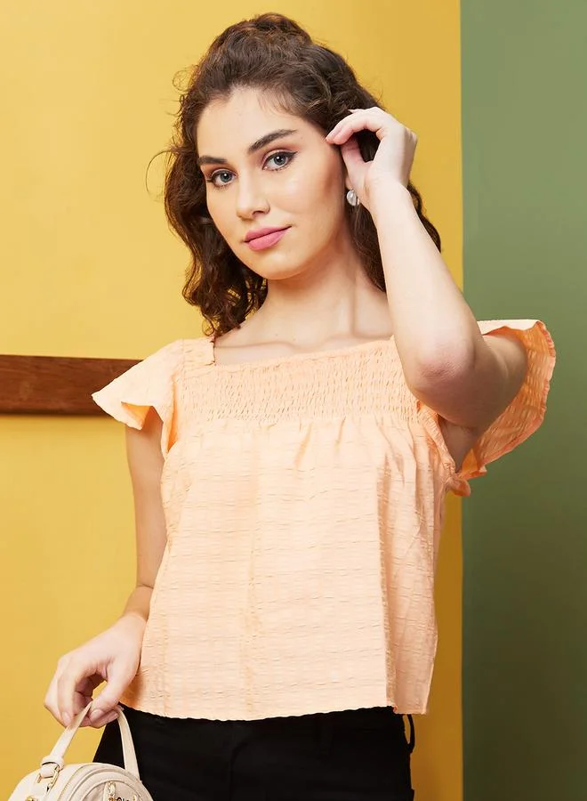 Globus Women Pink V-Neck Bishop Sleeves Blouson Crop Top