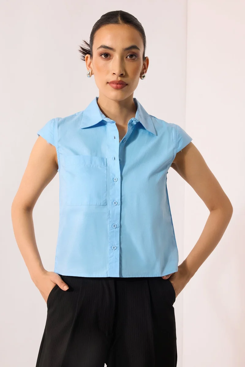 Cotton Stripe Workwear Bustier Style Crop Shirts for Women