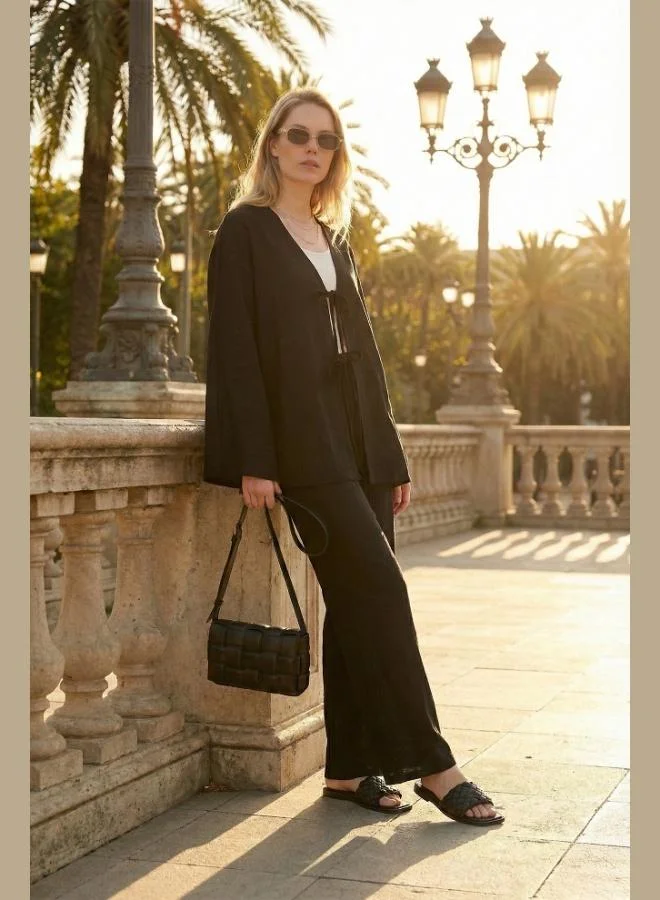 Lela Collar and Sleeve Folded Seersucker Kimono Cardigan Women's CARDIGAN 5869014