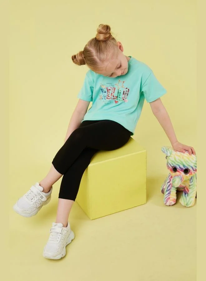 Lela Cotton Crew Neck Short Sleeve Tights Top-Bottom Set Girls SET 6212001