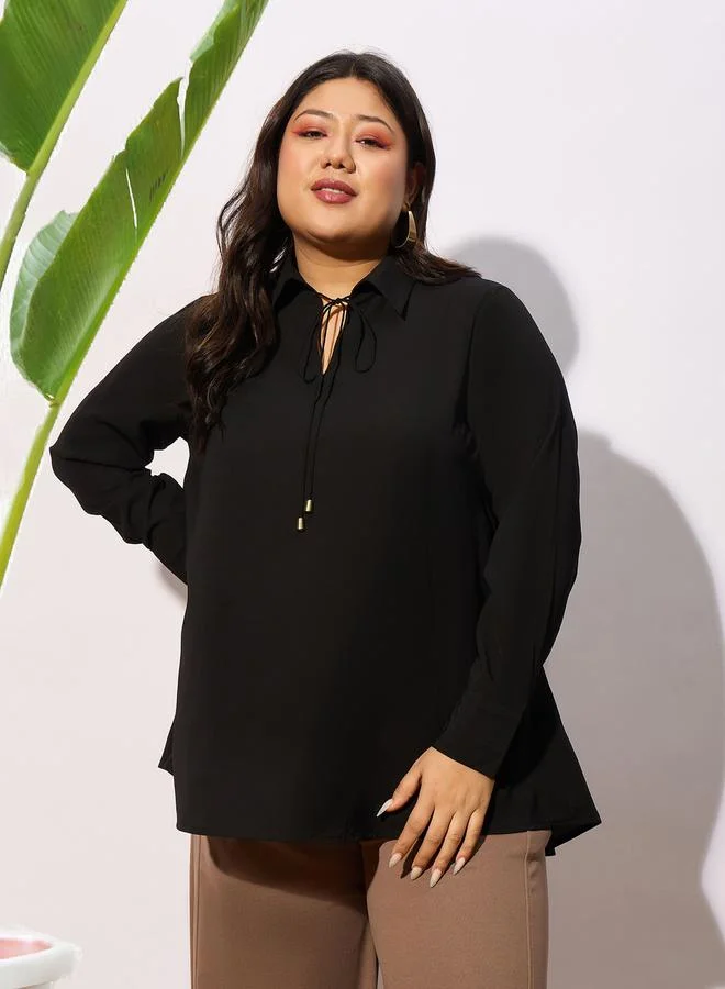 Black Solid Crop Top for Women