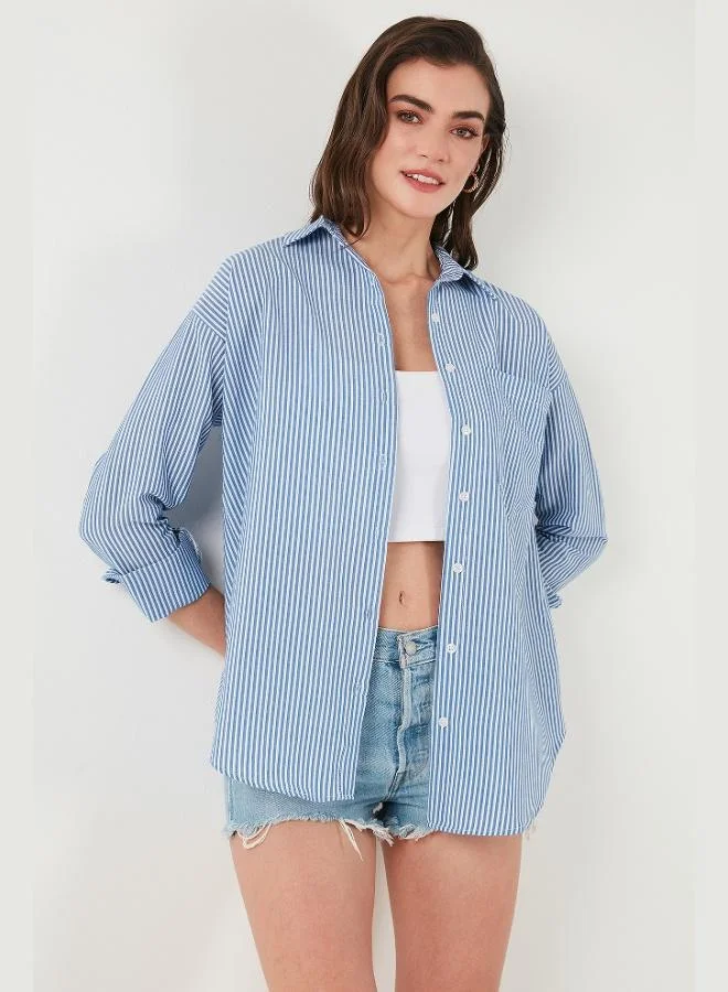 Lela Embroidered Three Quarter Sleeve Judge Collar Cotton Şile Cloth Shirt Women's SHIRT 611BZ0044
