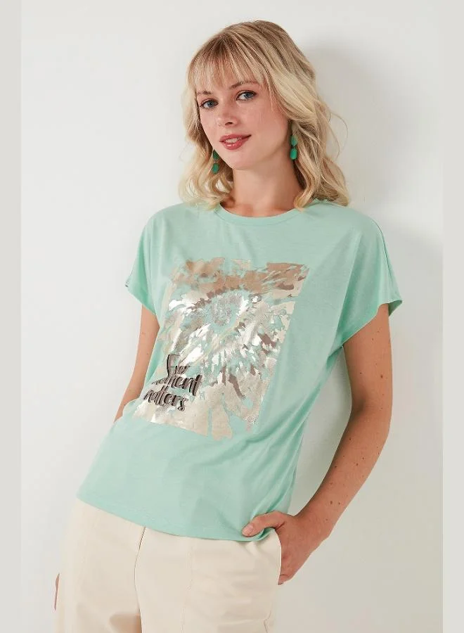 Lela Cotton Slim Fit Crew Neck T-Shirt with Ruffled Sleeves Women's T-Shirt 5864500
