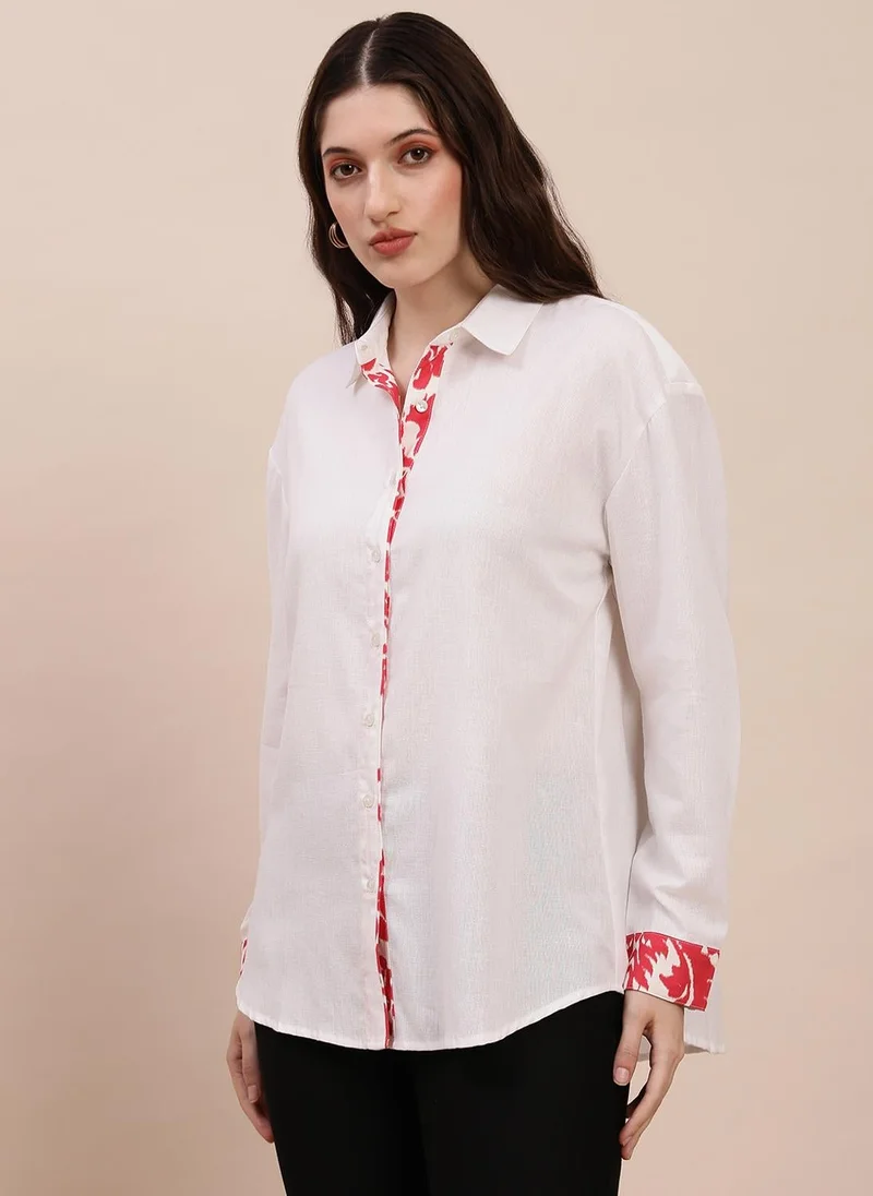 Globus Women Burgundy Short Sleeves Collared Neck Back Button Shirt Style Top