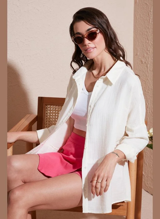 Lela Collar Detailed Regular Fit Chiffon Shirt Women's SHIRT 61114410