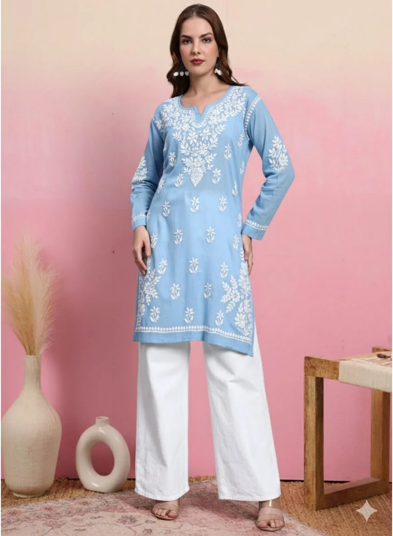 Women Chikankari Hand Embroidered Rayon Kurti -AL4071