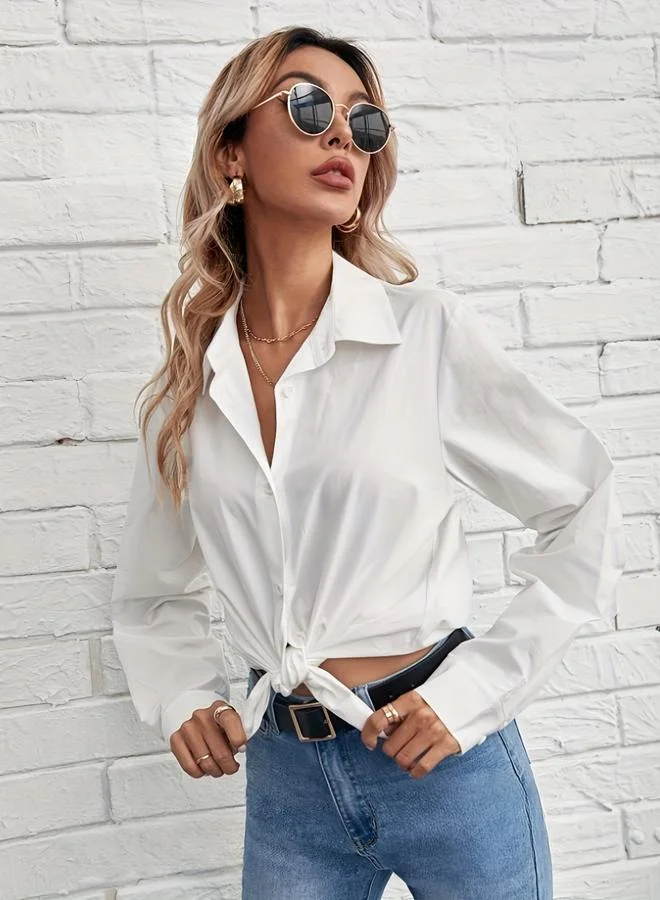 White Polka Dot Buttoned Shirt and Shorts Set