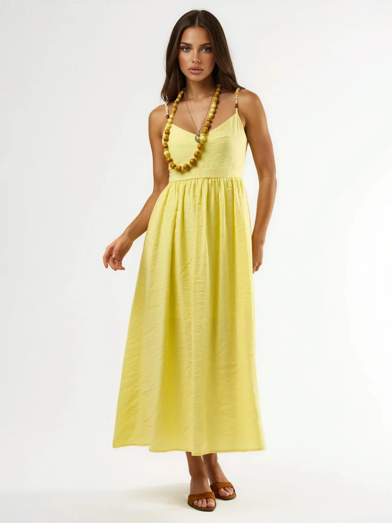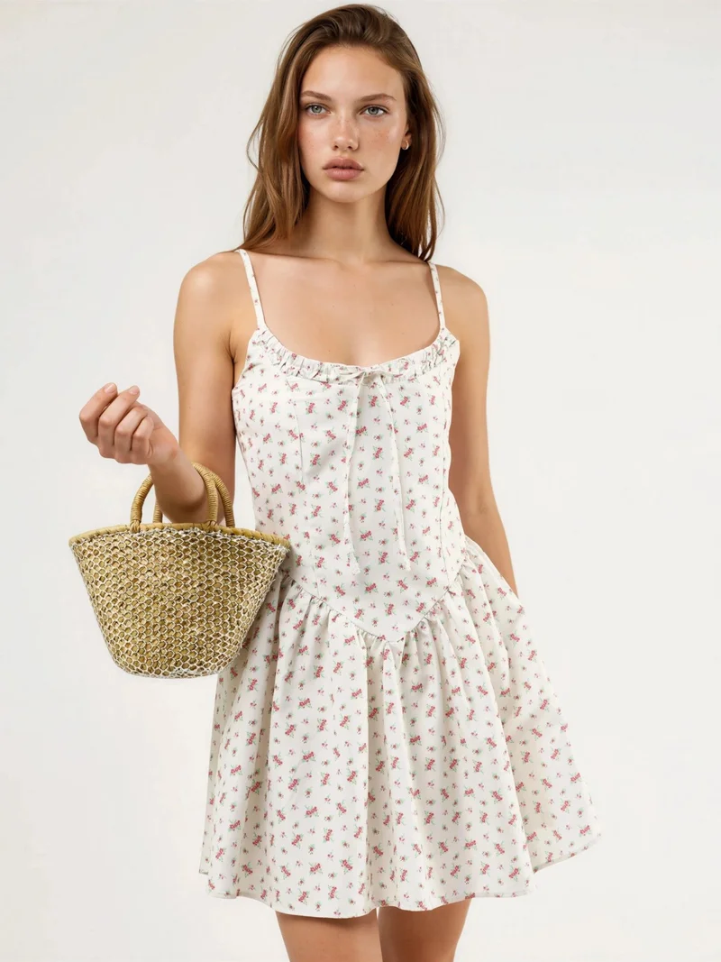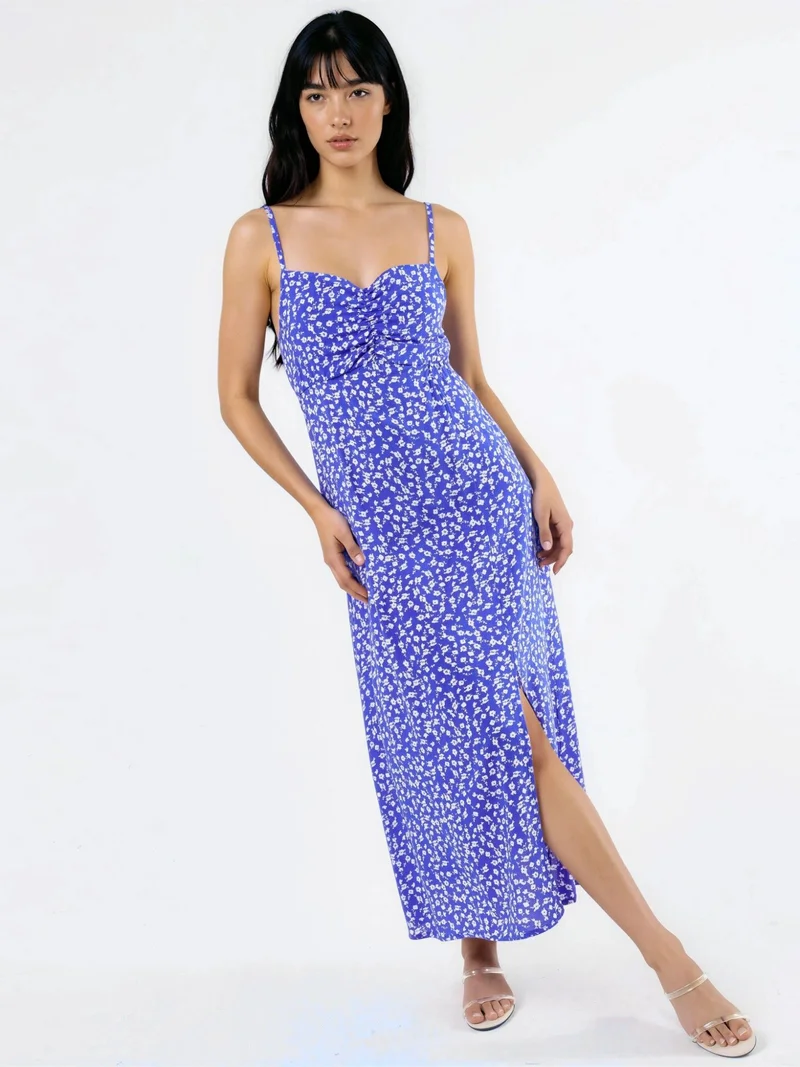 BUSEM Floral V-neck Midi Dress with Tie Detail