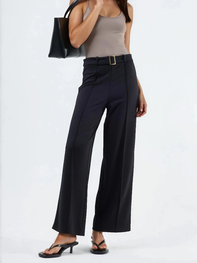 BUSEM Textured Wide Leg Trousers with Drawstring Waist