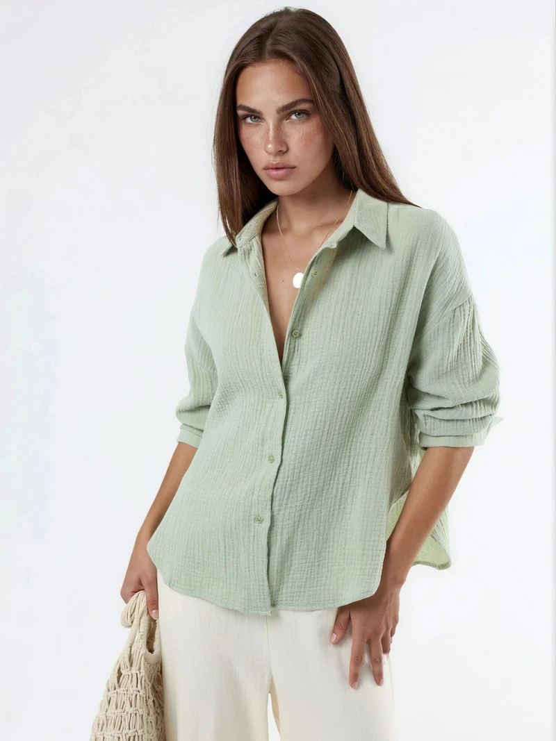 BUSEM Relaxed Fit Crew Neck Long Sleeve Blouse