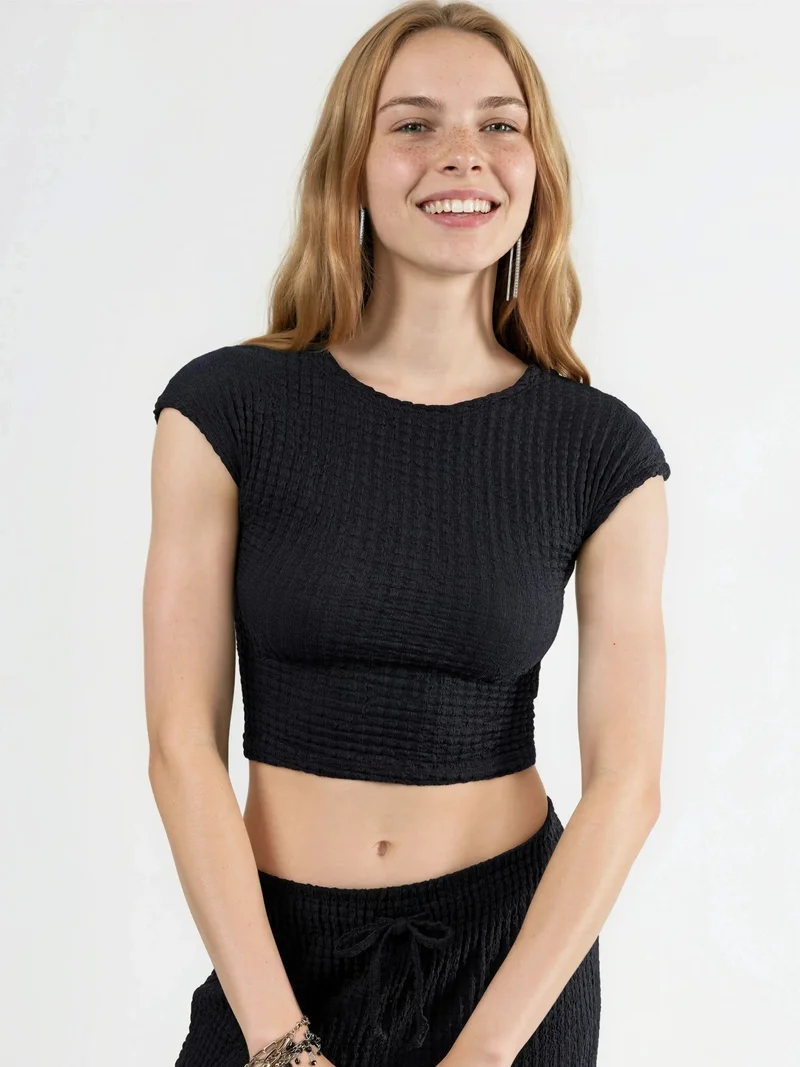 BUSEM Ribbed Crew Neck Short Sleeve T-Shirt