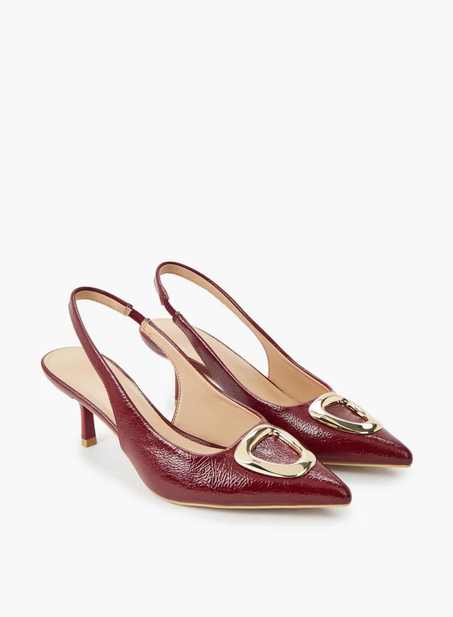 Women's Textured Pointed Toe Shoes with Buckle Closure