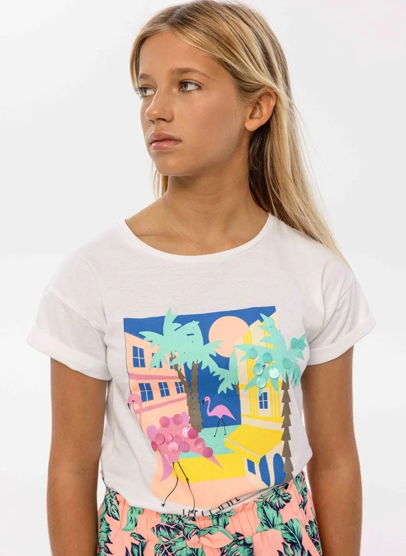 Boys T-shirt with patch graphic coral