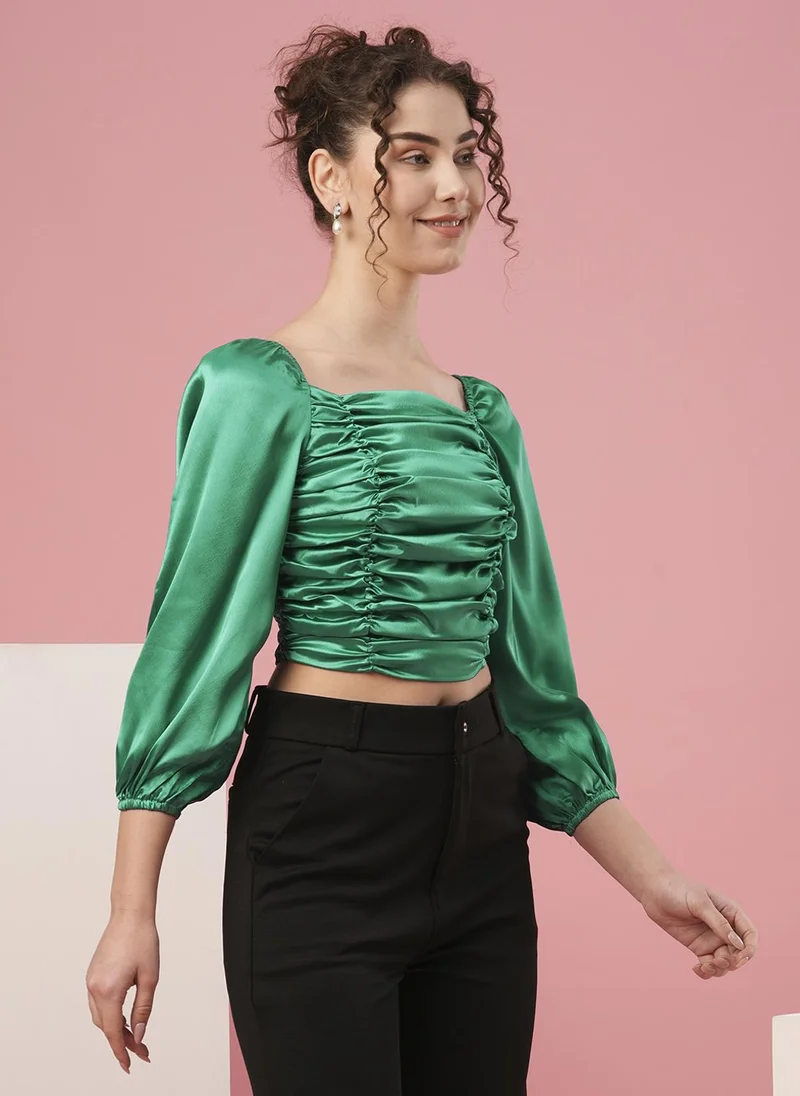 Globus Women Green Peak Lapel Bishop Sleeves Button Detail Mini Workwear Blazer Dress