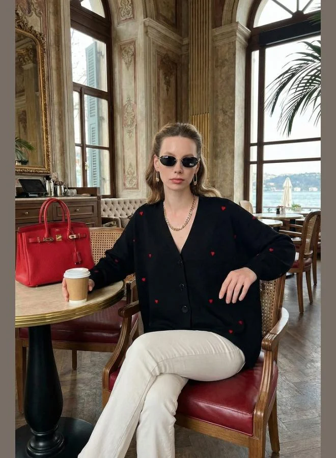 Lela Oversize Fit Patterned V-Neck Knitwear Cardigan Women's CARDIGAN 4616193