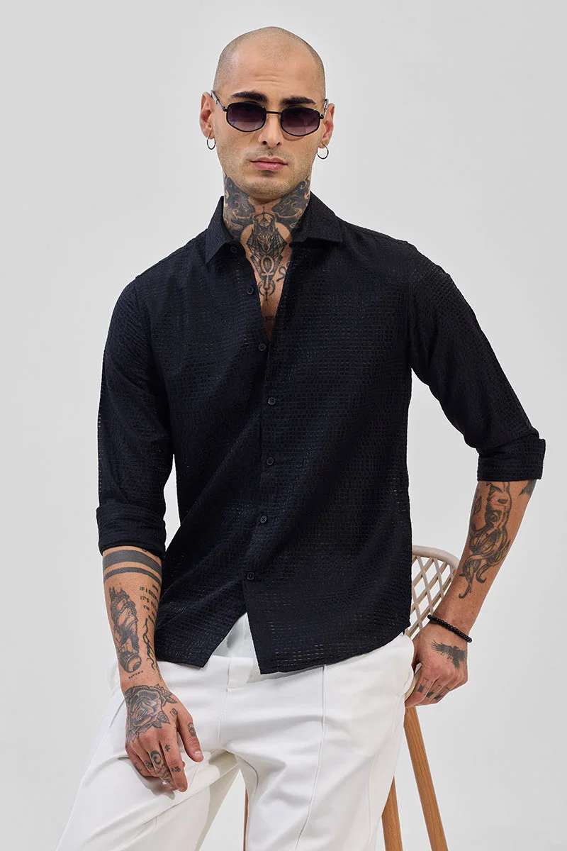 Jet Black Textured Long Sleeve Slim Fit Shirt