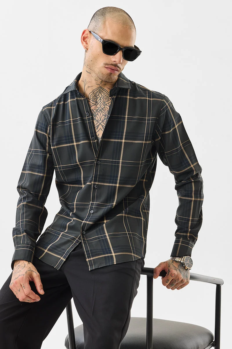 Black Checkered Long Sleeve Slim Fit Formal Shirt