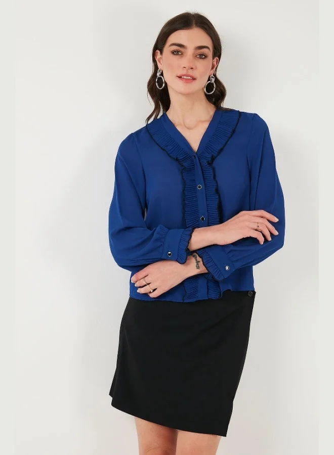 Lela Regular Fit Front-Tie Ruffled Blouse Women's Blouse 611FB20064