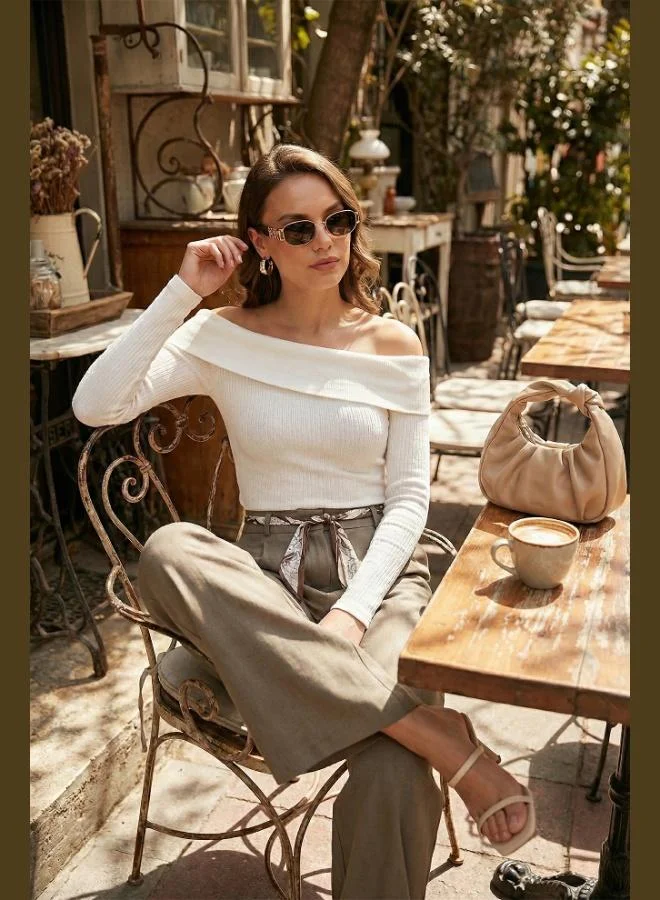 Lela Regular Fit High Waist Straight Leg Trousers with Scarf Belt Women's Pants 6923860
