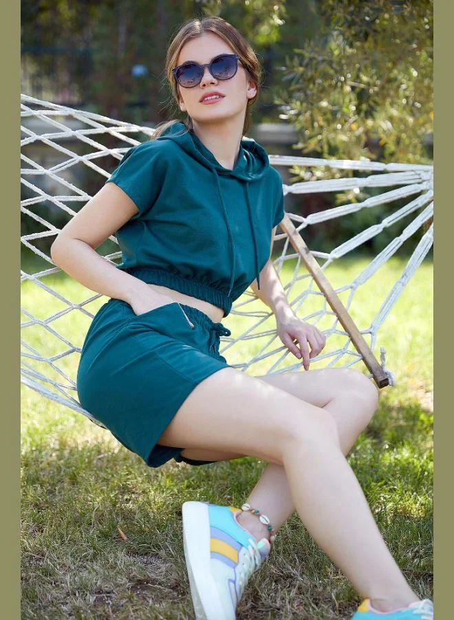 Lela Cotton Hooded Pocketed Crop Top and Bottom Set for Women SET 5864922