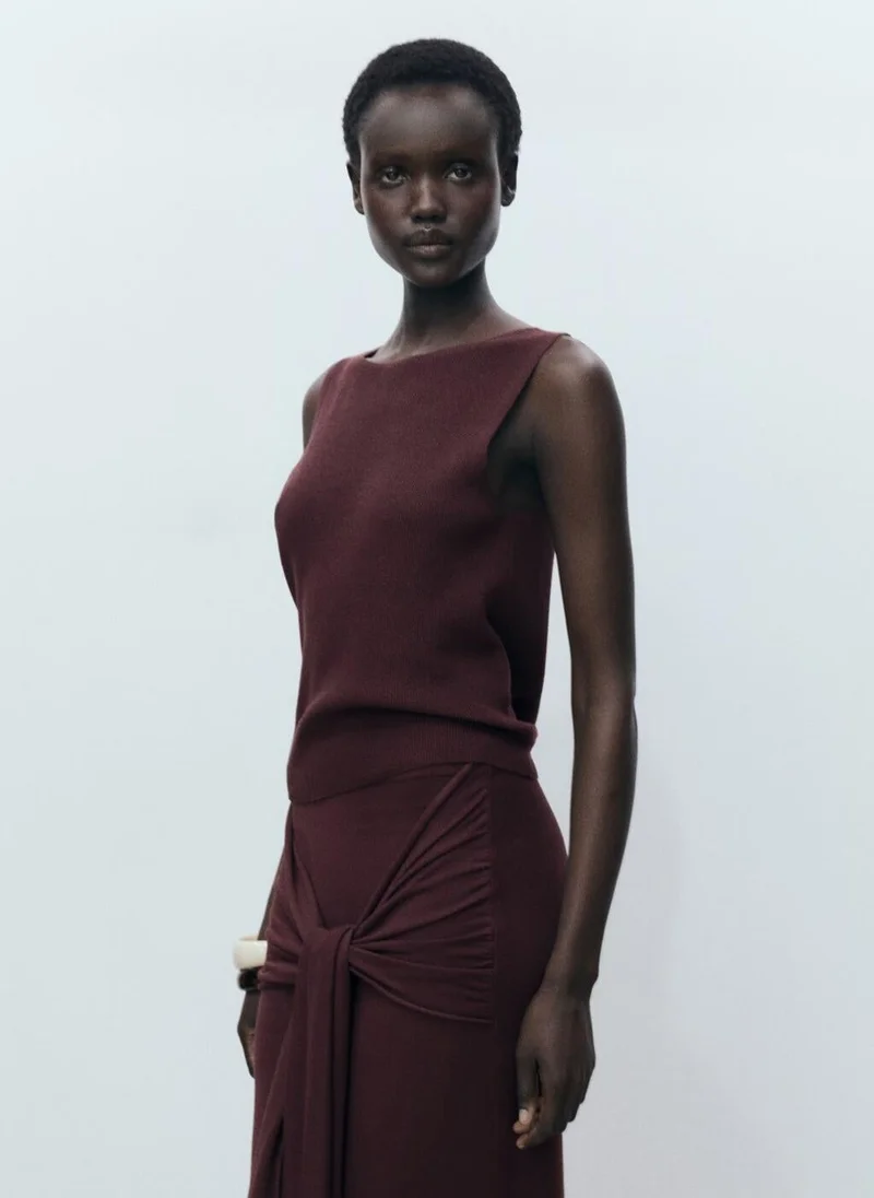 Knitted poncho with stitching detail