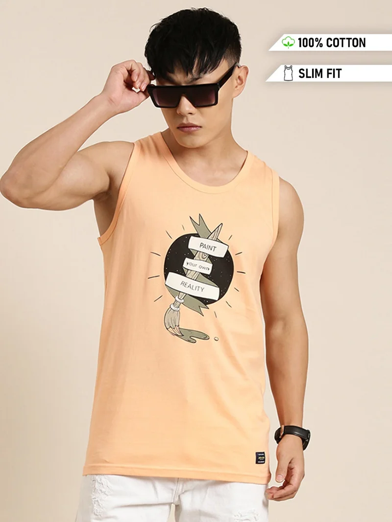 Beige Printed Cotton Shirt for Men