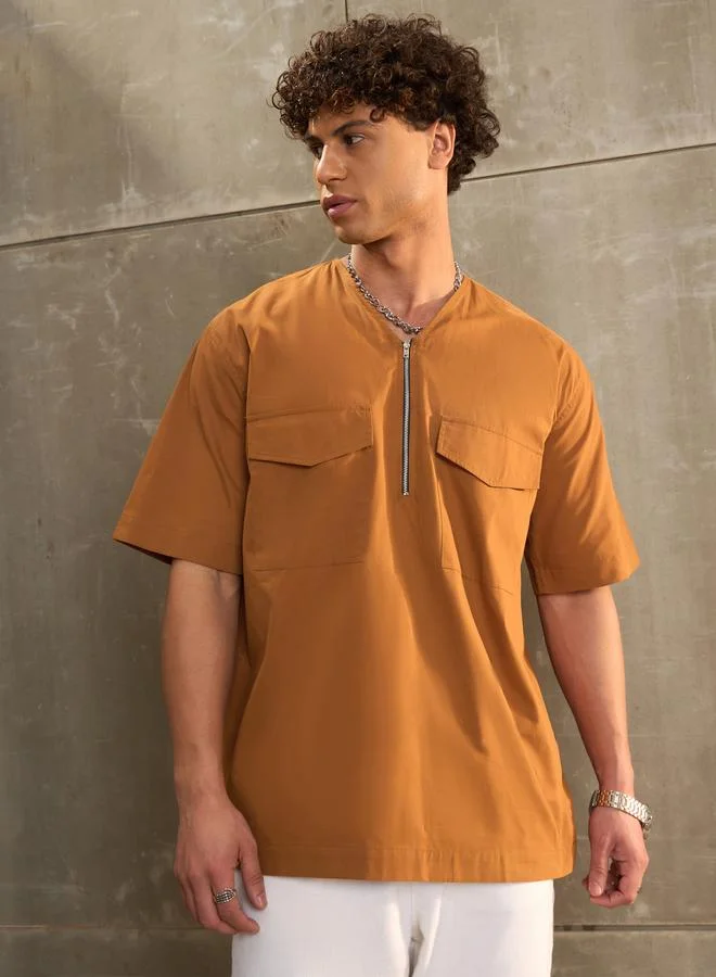 Oversized Solid Shirt with Long Sleeves