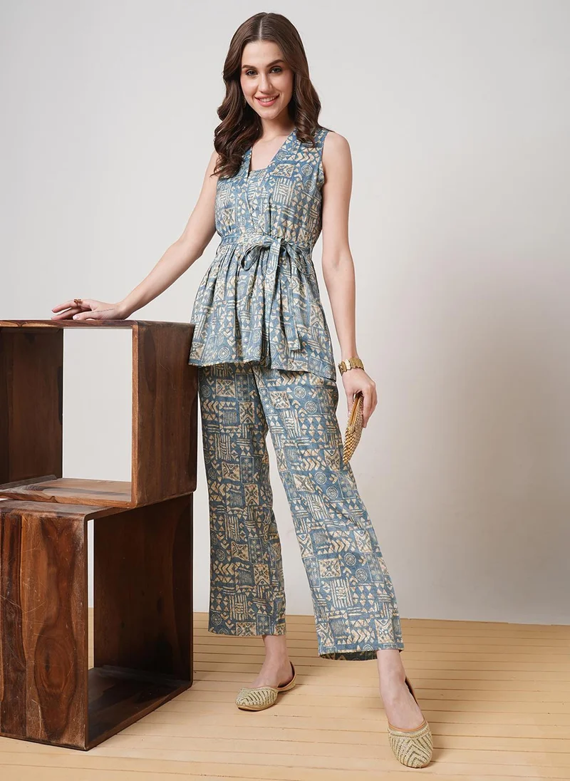 Globus Embroidered Straight Kurta with Trouser Co-Ords