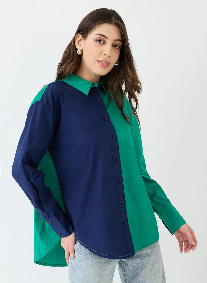 Globus Women Green Short Sleeves Collared Neck Back Button Shirt Style Workwear Top