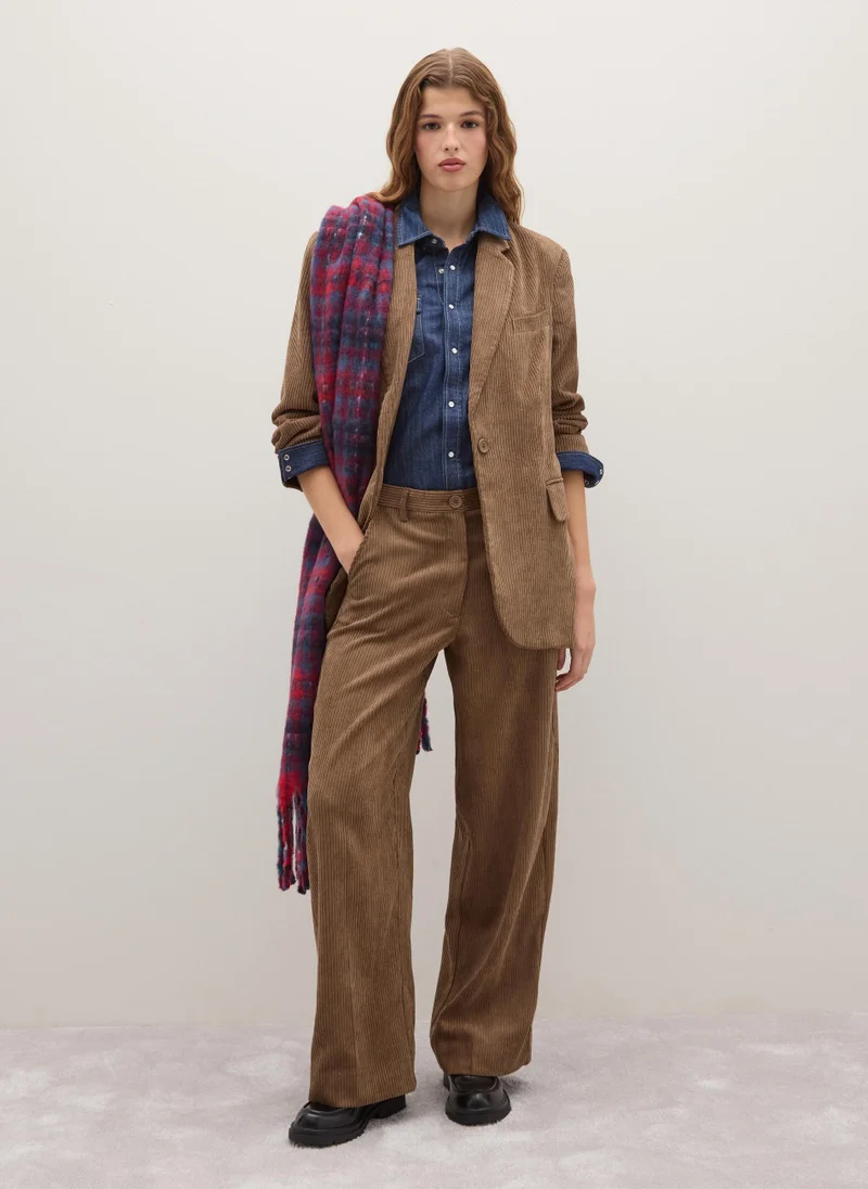 OVS Beige Cotton And Velvet Trousers Regular Fit