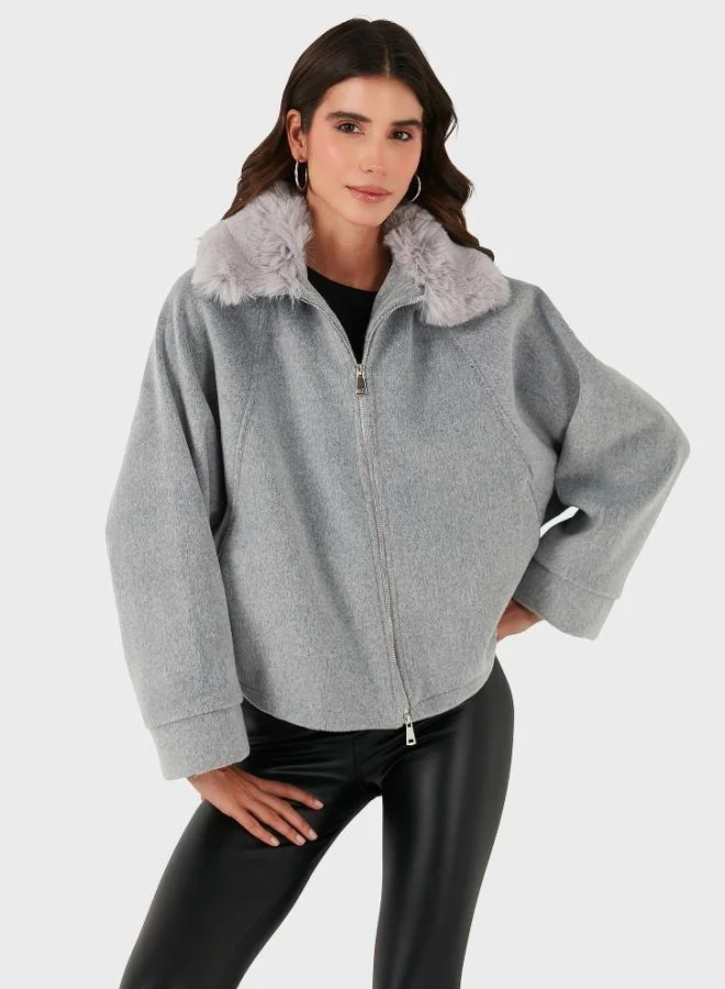 Lela Oversize Classic Collar Batwing Sleeve Zippered Satin Jacket Women's JACKET 6839584