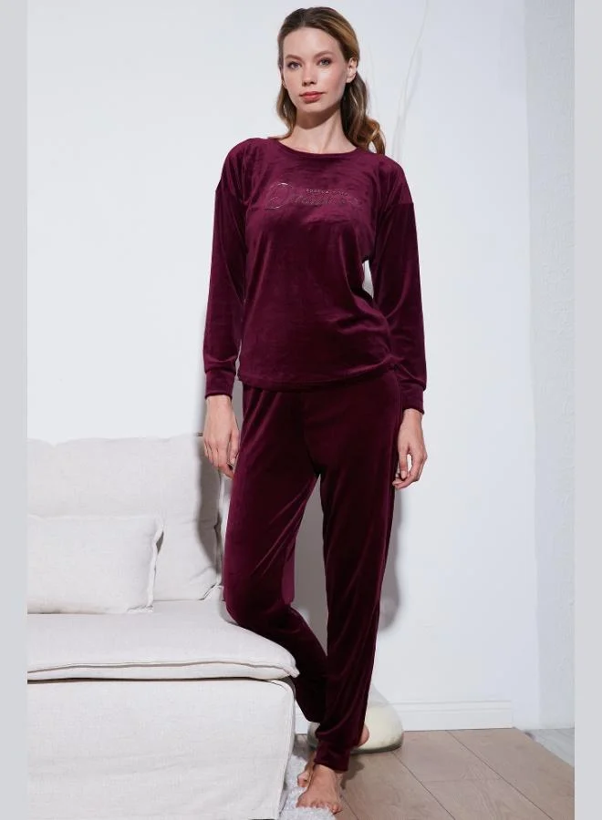 Lela Regular Fit Soft Texture Velvet Pajama Set Women's Pajama Set 6094200W4