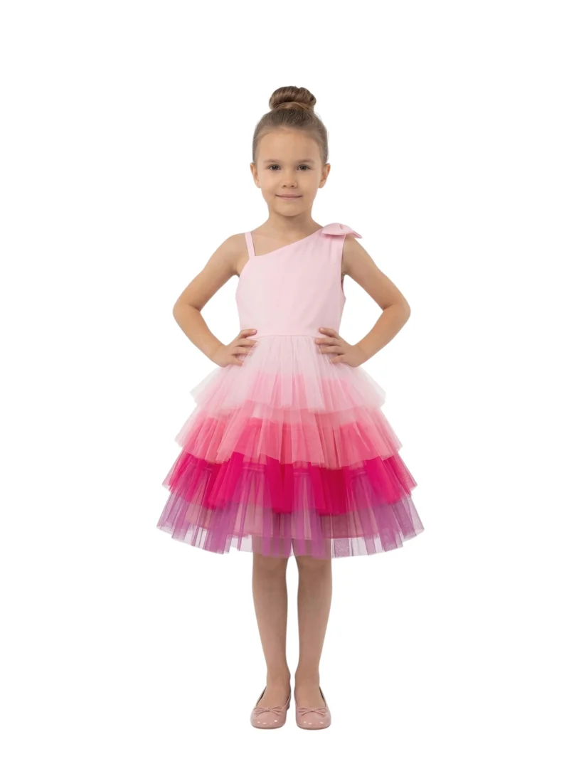 Girls Tiered Ombre Tulle Party Dress - Pink