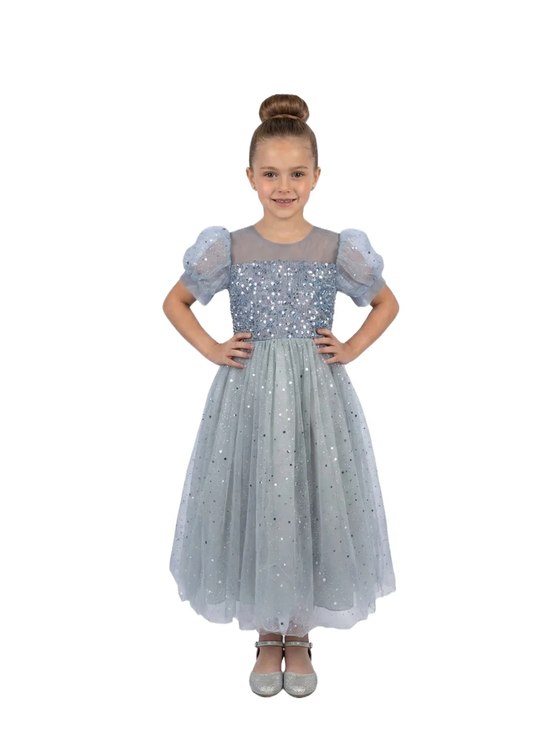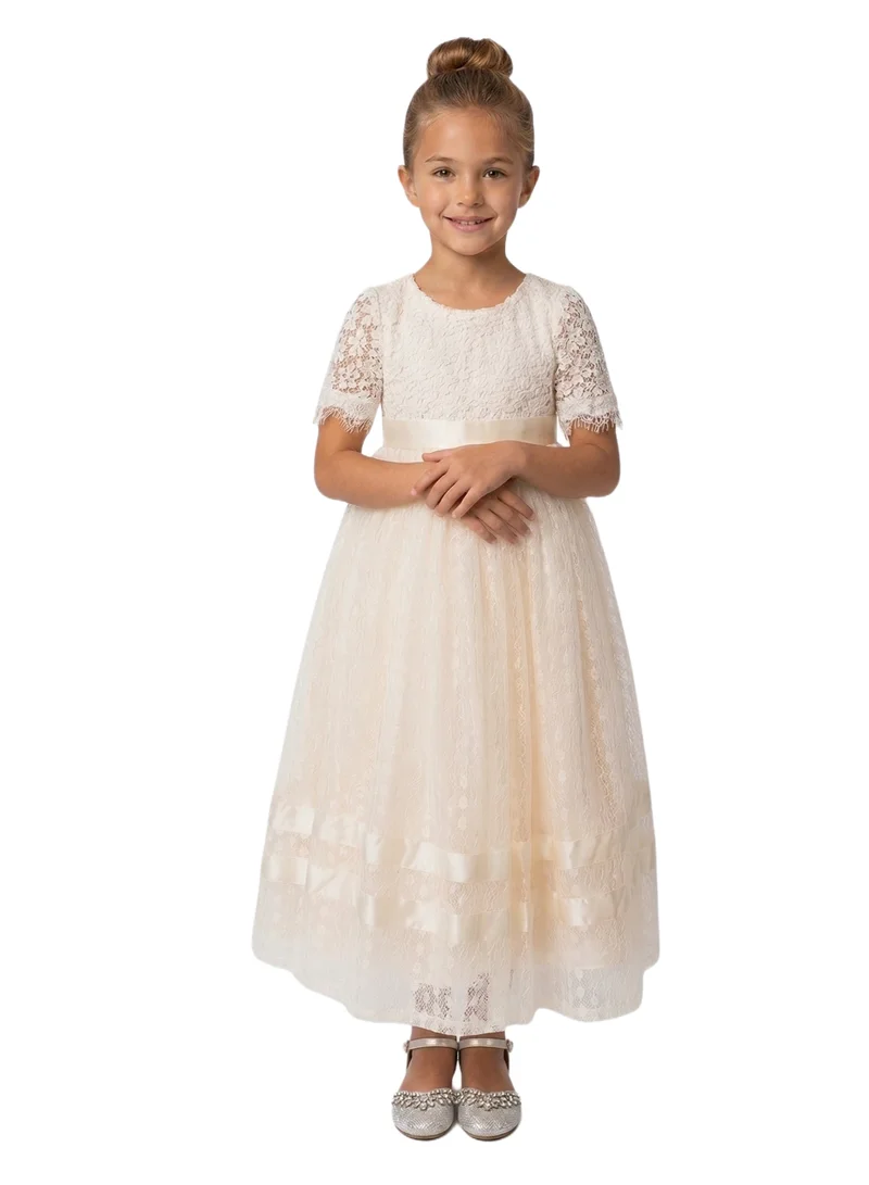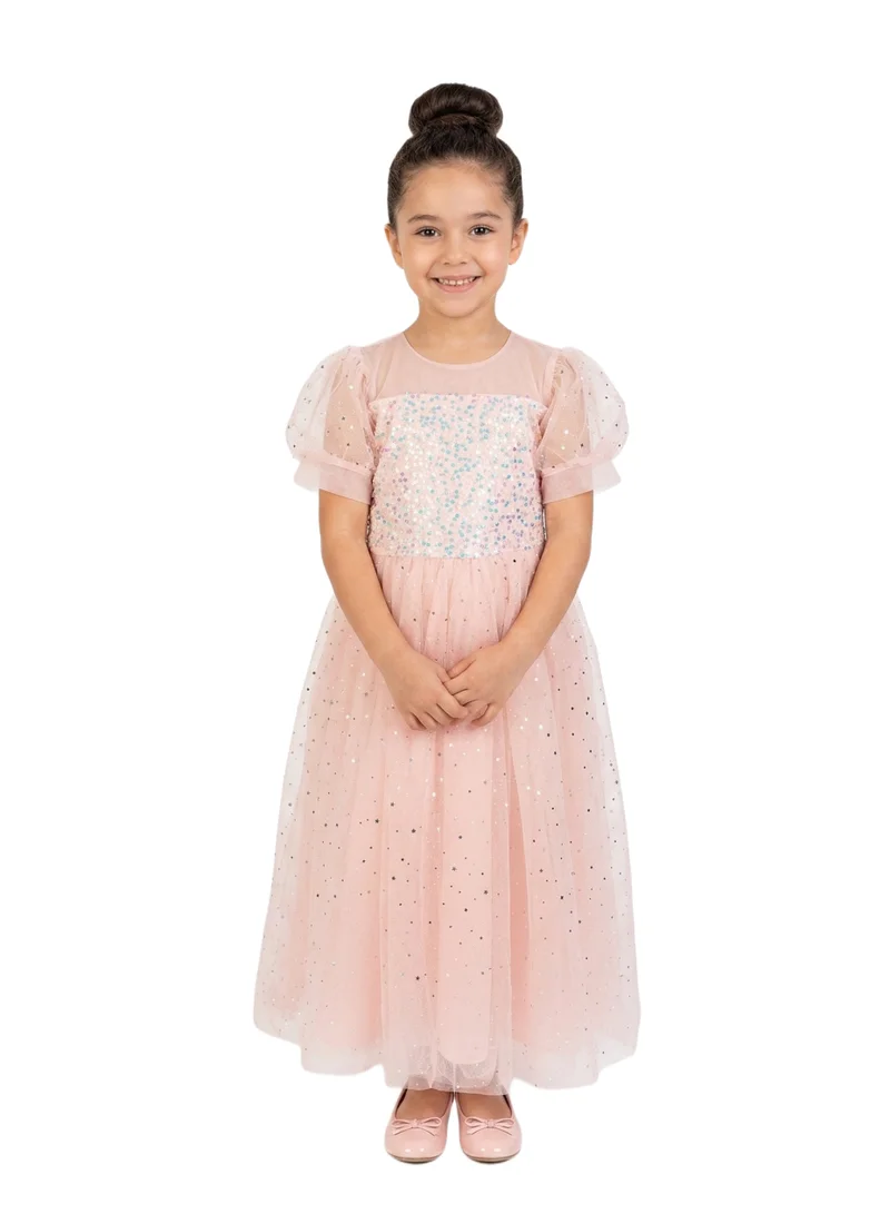 Peach Tulle Tutu Party Dress with Floral Waist Detail