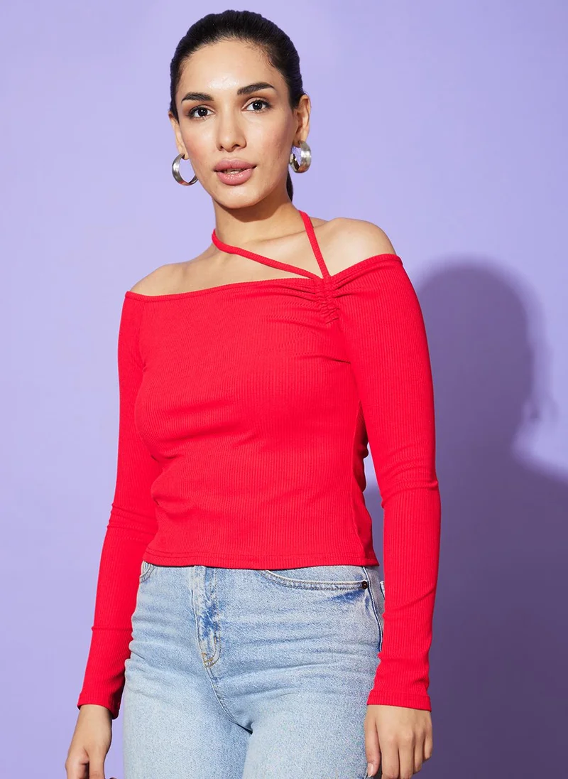 Globus Women Round Neck Puff Sleeves Sequined Party Top