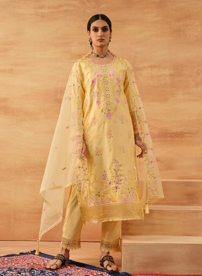 Women's Indigo 100% Cotton Embellished Tunic Full Length Casual Straight Fit Kurta Set