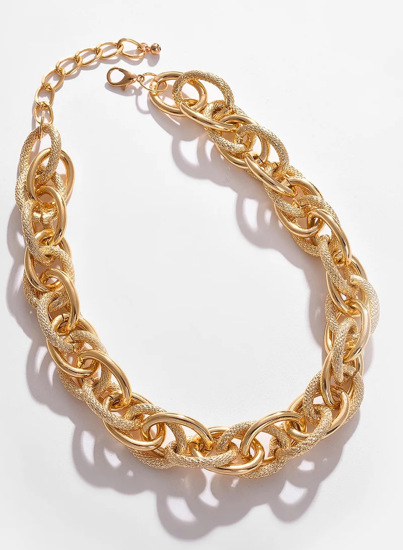 Long necklace of links with heart pendant Golden