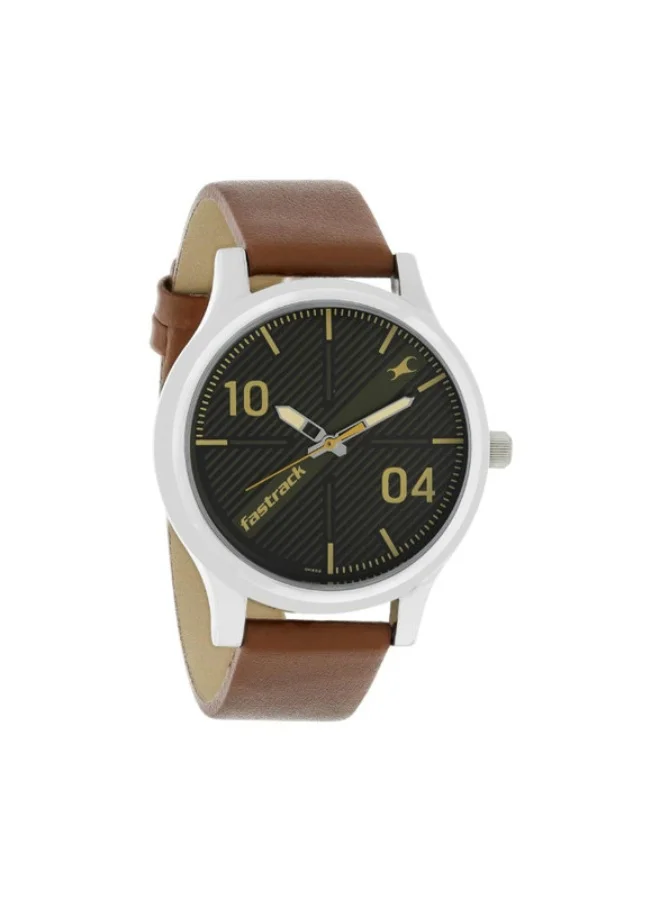 Fastrack Quartz Analog Black Dial Leather Strap Watch for Guys 38051sl02
