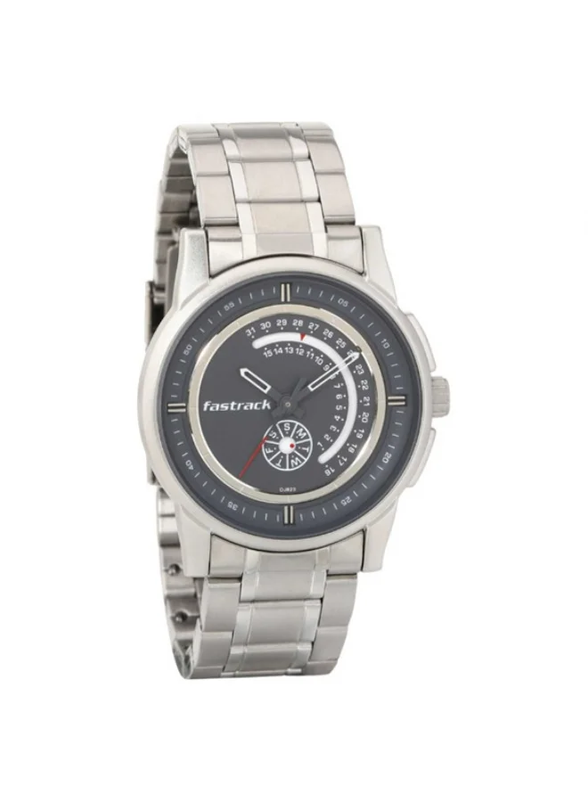 Fastrack Go Skate Quartz Analog with Day and Date Grey Dial Stainless Steel Strap Watch for Guys 3215sm02