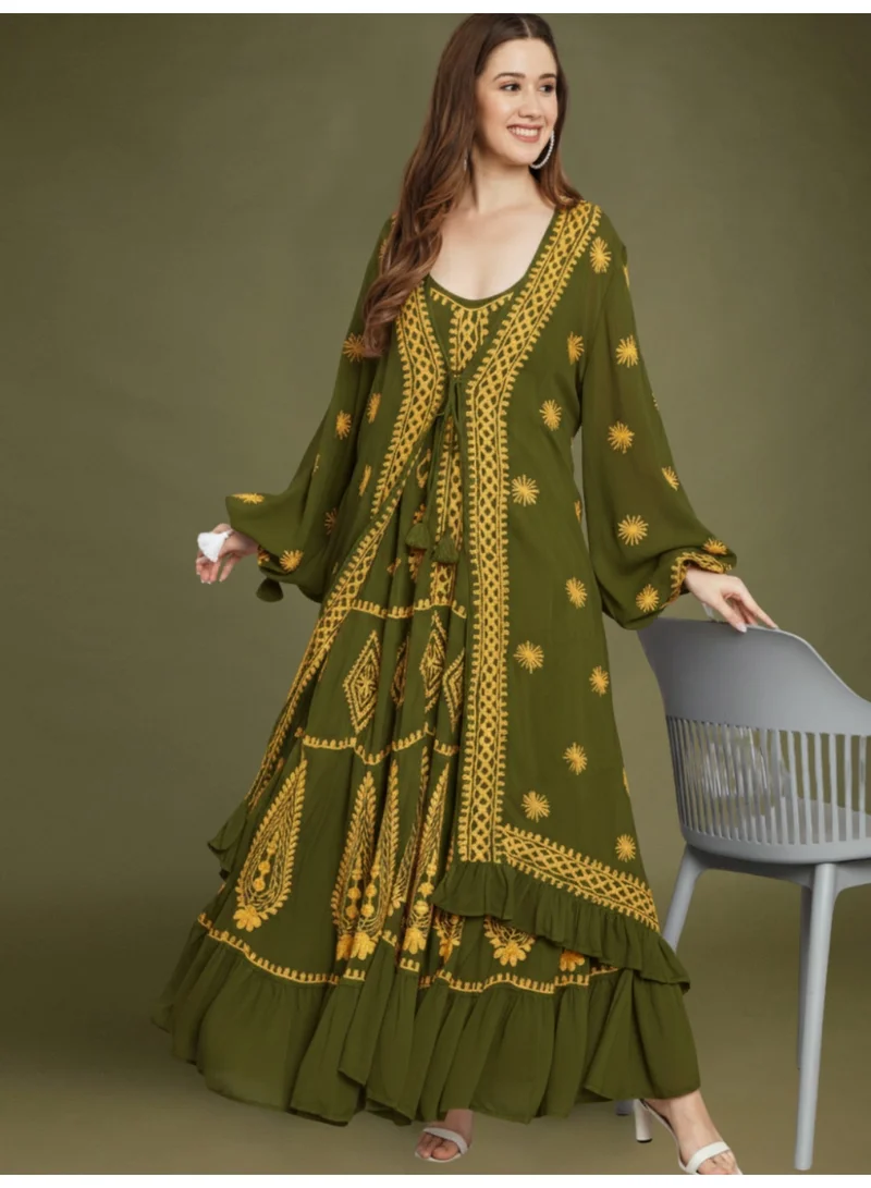 Women Floral Embroidered Chiffon Jalabiya-AL3830
