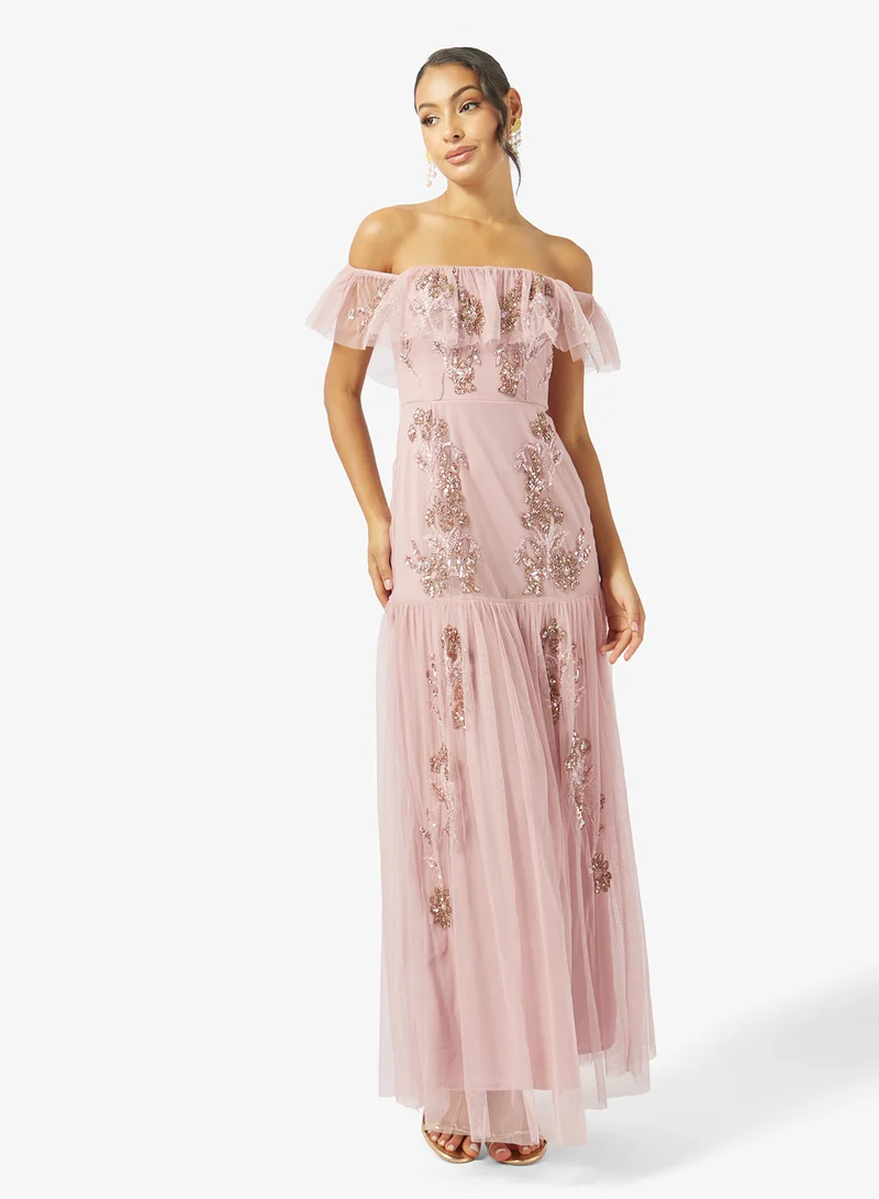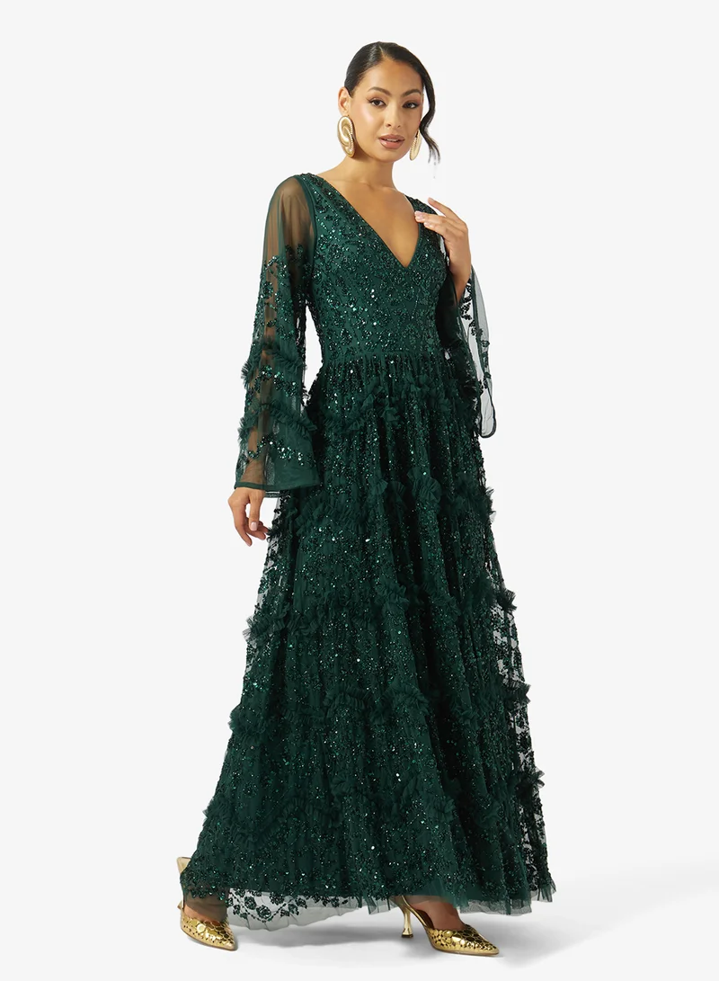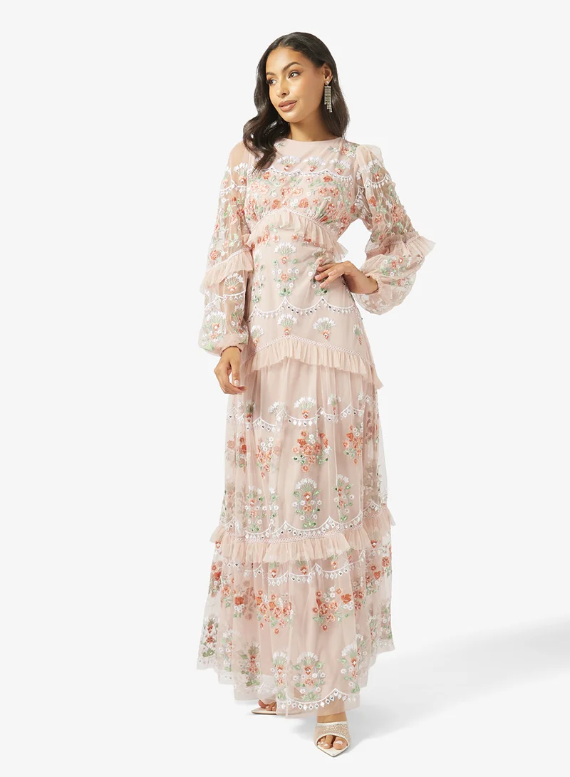 Long Sleeve Embellished Premium Ruffle Maxi